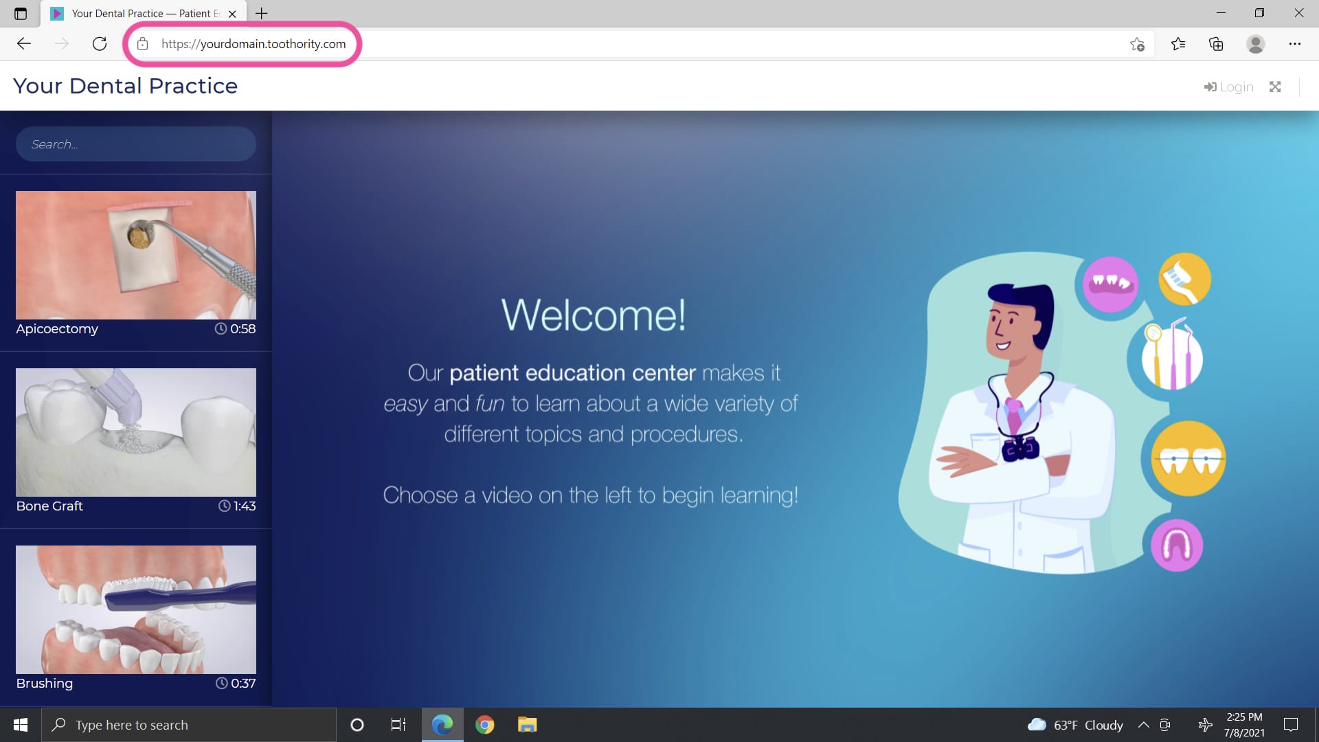 Open Microsoft Edge web browser and and navigate to your practice’s unique Toothority domain that was given to you at signup. If you do not have this, please request it by emailing [email protected]